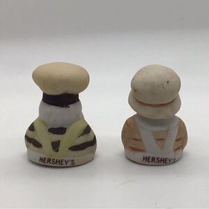 Hershey’s bakers thimbles. Cute couple would be a great addition to any thimbles collection. No chips or cracks on this vintage couple- one Checking twice, one Wholesome Recipe.