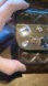 So chic! Smoky grey 'quilted' jelly bag with long goldtone chain. Gems and studs across the front on a goldtone plate across the front. Very good used condition, metal needs a little polishing, inside looks new. Ultra maximalist.