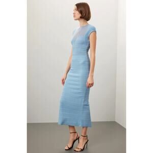 Hervé Léger Blue Bandage Sheer Bustier Gown