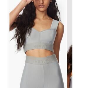 Step into effortless style with this chic Hervé Léger logo bra top and high-waisted leggings set in a stunning gray/blue hue. Designed with a figure-hugging fit, the top features wide supportive straps and a flattering bustier-inspired silhouette, while the leggings provide a sleek, sculpted look. Crafted from a premium blend of polyester and spandex, this set offers the perfect mix of comfort and sophistication—ideal for athleisure wear or casual outings.