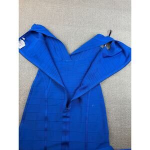 Hervé Léger Women's Medium Blue V Neck Dress Gown