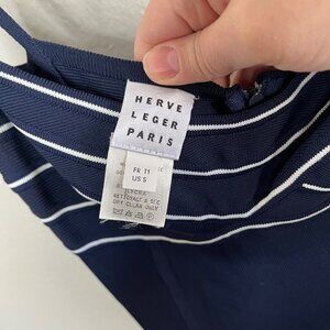 Excellent preloved condition Herve Leger 90s Navy Blue Bandeau Top Stretch Bodycon Maxi Dress size small