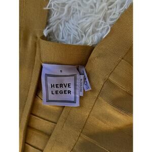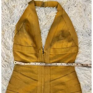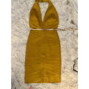 Herve Leger Bodycon Lilou Halter Dress HOI6R627 GOLDEN SUN/S