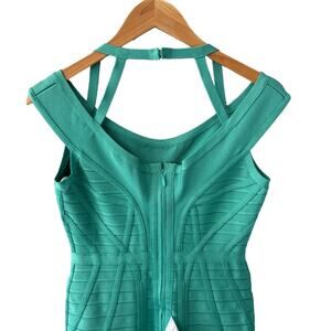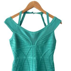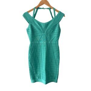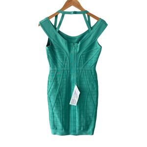 Herve Leger Connie Bandage Dress Aqua Jade Size Medium NWOT