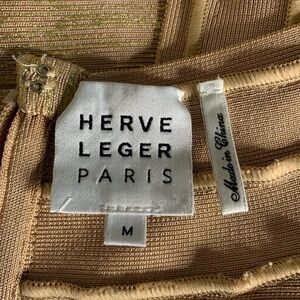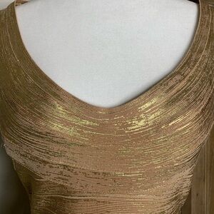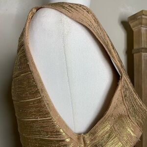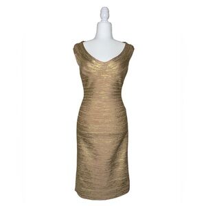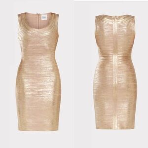 Herve Leger Gold Foil Scoop Neck Bandage Dress
