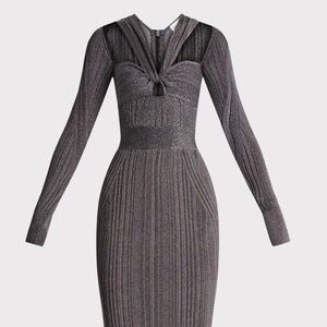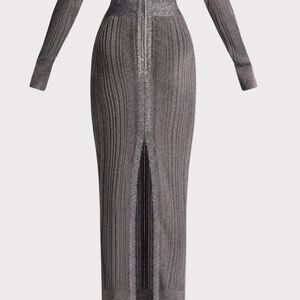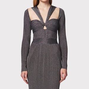 HERVER LEGER Var Draped Metallic Gown in Metallic Gunmetal