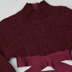 NWOT Thick knit with pulled wool, crop with elastic wrap band at waist. Excellent condition. Unique Sweater!