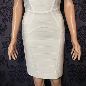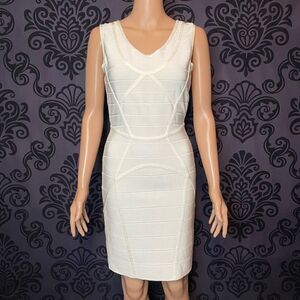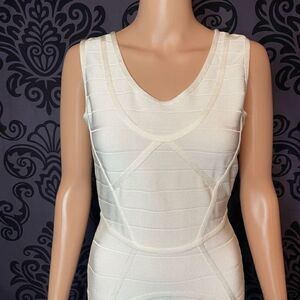 Herve Leger Neutrals Bandage Panel Bodycon Zip Up Dress Women’s Size M Alabaster