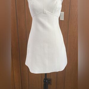 This charming ottoman-knit minidress boasts a strappy design, adorned with shining crystal embellishments.