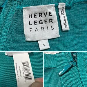 Hervé Léger bandage dress teal bodycon sculpting size S cocktail luxury