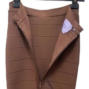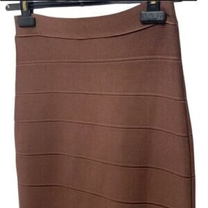 Herve Leger Pencil Silhouette Bandage Skirt Stretch Cocoa Brown Women's Sz Small