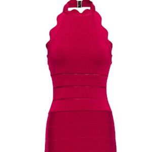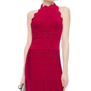 Herve Leger - Pointelle-Trimmed Scalloped Bandage Halterneck Maxi Dress Red