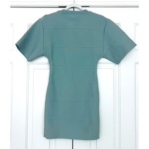 Herve Leger Raglan Sleeve Sheath Mini Bandage Dress in Seafoam Green - Size XS