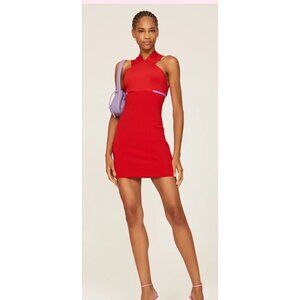 Herve Leger Red Bandage Dress Size Large High Neck Sexy Bodycon Cocktail Party