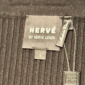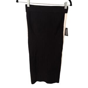 Herve Leger Ribbed Knit Midi Pencil Skirt Side Striped Black Alabaster, S NWOT. See photos for measurements.