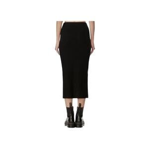 Herve Leger Ribbed Knit Midi Pencil Skirt Side Striped Black Alabaster, S NWOT