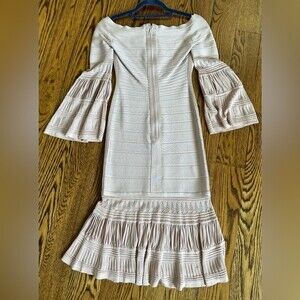 Herve Leger Rose Blush Bandage midi Dress with 3/4 sleeves Size XS