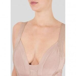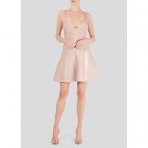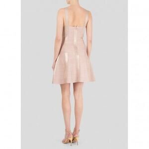 Herve Leger Shayla Foil Flared A Line Bandage Stretch Dress Rose Gold - XXS