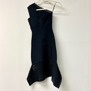 Herve Leger Sleeveless Asymmetric Knee Length Fishtail Dress Black Women's XS