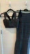 Herve Leger Style Short Shirt with Long Skirt. Black color with metallic shine.
