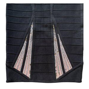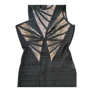 Herve Leger XS Black Bandage Sequin Embellished Bodycon Dress 35" Glam Party