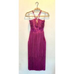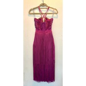 Herve Leger XS Pink Fringe Bandage Dress Midi Holiday $1650