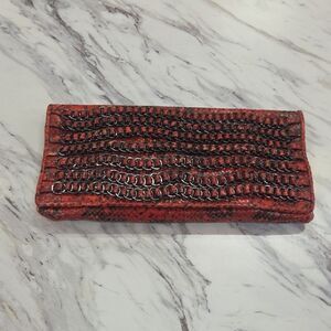 Elegant clutch with striking chain detail. Perfect for a bold statement.