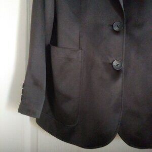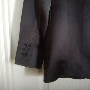 Herzen's Angelegenheit Black Satin Womens Blazer 2 Button Pockets Dressy 40
