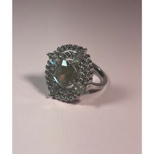 Larger silver ring with white topaz and labradorite gemstones Adjustable band that can fit sizes 8 and up Never worn