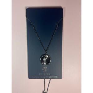 Black metal faceted medallion necklace with white topaz gemstones Claw clasp with adjustable chain length Never worn