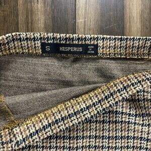 Hesperus S Plaid Tan Brown Houndstooth Mini Skirt Elastic Waist y2k Fall Preppy