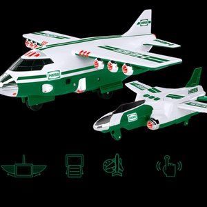The Cargo Plane is the newest addition to the Hess toy truck collection. It features more than 30 LED lights, an extending slide-out ramp, and rear cargo bay doors that open at the push of a button. Kids will find a mini Jet inside with six additional lights plus sounds.