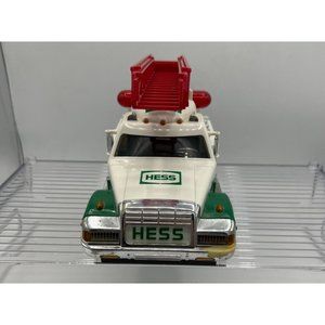 Add nostalgia to your collection with the vintage Hess Gasoline Truck, featuring an extension ladder and lights. Rendered in white and green, this toy offers realistic imagination play with added sound and flasher features. Suitable for unisex kids. Made from durable plastic.