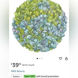 Hester & Cook Die-Cut Hydrangea Placemat 15.6" x 15.8" Set of 12