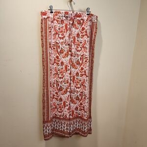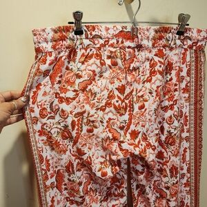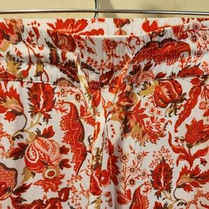Hester & Orchard Floral Red and White Elastic Waisted Flare Rayon Casual Pant L