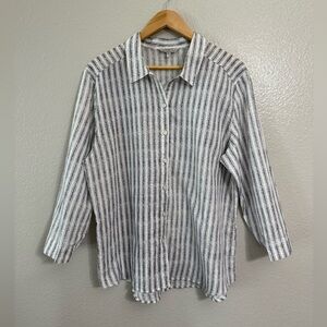 Hester & Orchard Linen Blend Striped Button Up Tunic Top