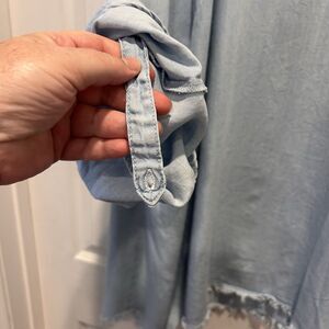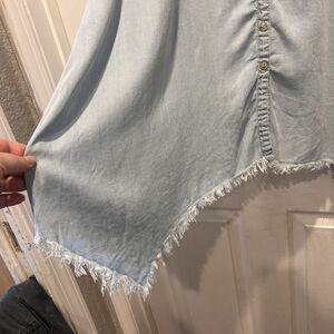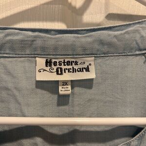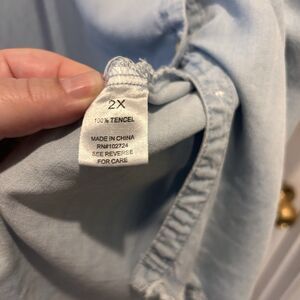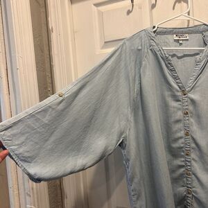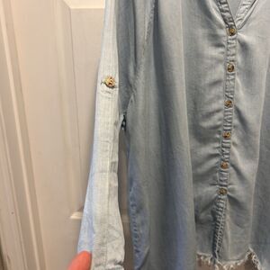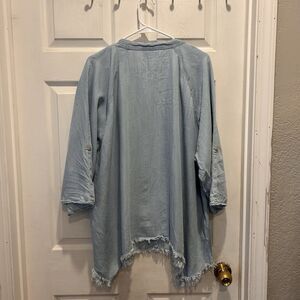 Hester & Orchard Tencel Chambray Button Up Asymmetrical Raw Hem Shirt Sz 2X