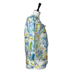 Ester & Orchard Top Linen Cotton Tie Neck White Multi Floral Women’s Size Small