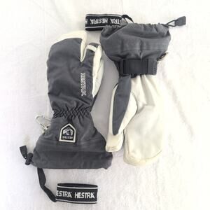 Experience premium cold-weather comfort with these Hestra Army Leather Heli Ski "three-finger" gloves (a split-finger mitt). They offer the warmth of a mitt but with a little more dexterity for gripping poles or adjusting gear on the slopes.
