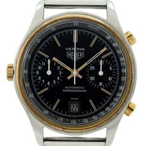 Heuer 38mm Vintage Verona Black Dial Automatic Chronograph Watch
