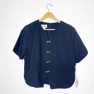 Heury Lee Black Vintage Short Sleeve Blouse Bow Button Size 12 NWT