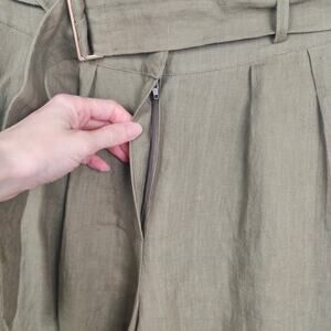 Hevron Maggie Pant Womens 2 Linen Wide Leg Belted Pleated HIgh Rise Olive Green