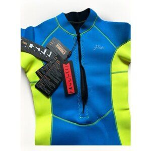 Hevto Youth Shorty Zip Front Wetsuit Blue & Neon New w/Tags Size 14 Watersports