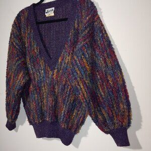 Hewlett Knitting Mills Textured Multicolored Wool Mohair Blend Sweater Size S Purple