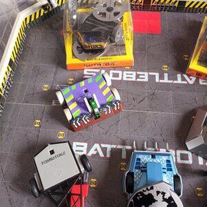 Arena with 7 battlebots. 2 of the 7 are still in original packaging.