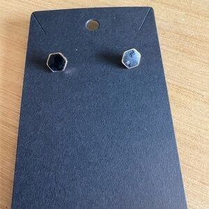 Elegant hexagon-shaped stud earrings in black. Perfect for any occasion.