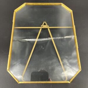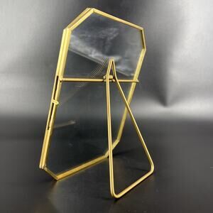 Hexagon Brass Hinged Double Glass Pressed Flower Stand Up Picture Frame 6 X 8