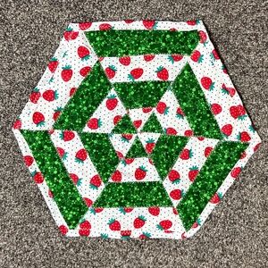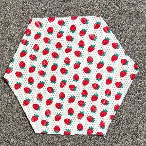 Hexagon Table Mat Color: Red, white, green Size: 17" x 15" Pattern: strawberries Handmade