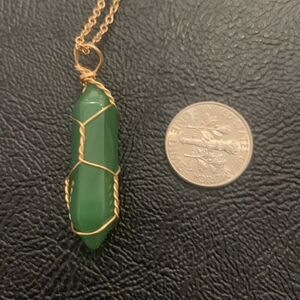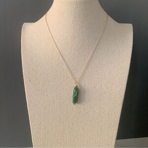 TAGS: unisex green pendant necklace hexagon stone gold tone jewelry grounding necklace crystal jewelry minimalist jewelry modern boho style #crystalnecklace #modernboho #calmenergy #greenstone #womensjewelry