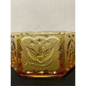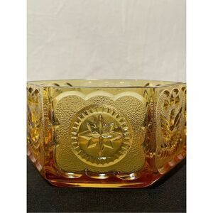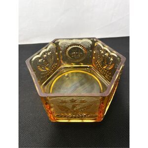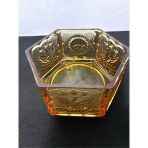 Hexagonal amber glass candy dish 4 1/4 inches wide 2.5 inches tall In good condition no chips